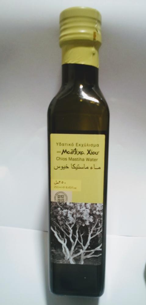 ماء الماستيكا مستخلص المائي الطبيعية المستعملة من عملية التقطير لماستيكا خيوس يستخدم ماء ماستيكا خيوس لاضافة طعم الماستيكا في ماء الشرب والمشروبات والطهى ( خالي من الجلوتين )